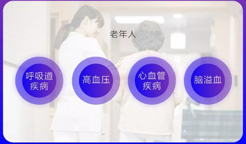 人体进入老年期,各项身体机能在下降,比较容易受到环境因素的影响而诱发各种疾病。空气污染不仅是引起老年人气管炎、咽喉炎、肺炎等呼吸道疾病的重要原因,还会诱发高血压、心血管、脑溢血等病症。