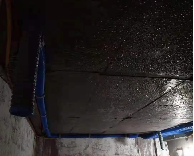 经过前期勘测,我们便发现这个地下室的墙面上挂满了水珠,整体环境潮湿异常。