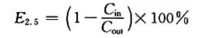 式中:E2.5 ——过滤设备对PM2.5 的综合净化效率(%);