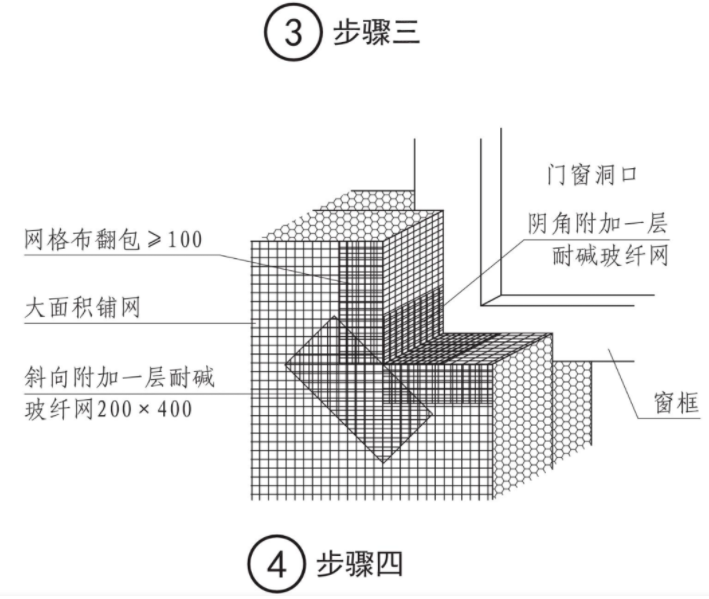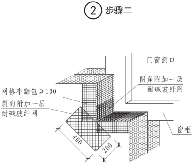 外门窗紧贴结构墙体外侧安装。外墙保温层尽量覆盖窗框型材,型材外露宽度控制在15mm。对于窗框较窄或有外遮阳、纱窗等安装要求的外窗,外墙保温层覆盖窗框型材宽度应≥ 30mm。
