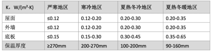 各部位非透明外围护结构的传热系数K,可参考下表规定。当采用分户式采暖/制冷系统时,还应对楼梯间隔墙、分户墙、楼板采取保温措施。