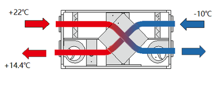 假设冬季室外温度是零下10度,室内暖气的温度是22度,通过换热芯的作用,可以让新风系统输入室内的新鲜空气温度保持在零上十几度,避免让室外的冰冷空气直接进入室内。