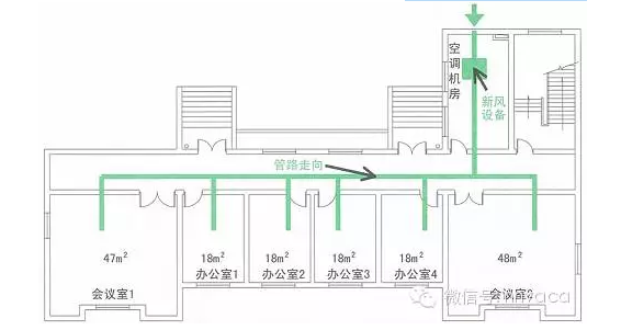 1)选择相近区域的房间为一个系统,且主风管的走向必须简单,尽量减少弯头;