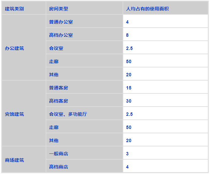 房间功能不同,室内人员密度也是不同,而人数是计算新风量的重要因素,因此对于人数的确定可参照下表,再由以下公式计算出实际房价的人数:房价人数(人) = A/B