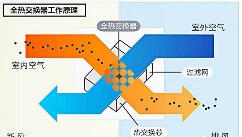 在置换过程中,因其自身携带过滤和热回收功能,所以在置换过程中会对空气进行过滤,滤除空气中有害物质如粉尘、PM2.5、雾霾、细菌等大分子物质,并且在排出室内污气的时候能够讲室内的热量回收,实现节能效果。原理就相当于换气扇,不过比换气扇要高级很多,因为它可以过滤空气同时进行热量回收。