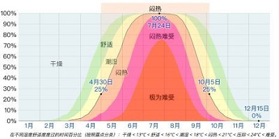 一般情况下,人在45-55%的相对湿度下感觉最舒适。相对湿度百分比越大就是空气湿度越大,百分比越小,就是空气湿度相对干燥。