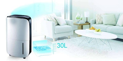 除湿机也称为去湿机、吸湿器、抽湿机,是由压缩机、热交换器、风扇、盛水器、机壳及控制器组成,其工作原理是:由风扇将潮湿空气抽入机内,通过热交换,此时空气中的水份冷凝成水珠,处理过后的干燥空气排出机外,如此循环使室内湿度降低。