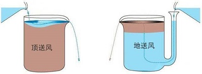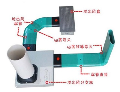 由于二氧化碳比空气重,因此越接近地面含氧量越低,从节能方面来考虑,将新风系统安装在地面会得到更好的通风效果。从地板或墙底部送风口或上送风口所送冷风在地板表面上扩散开来,形成有组织的气流组织;并且在热源周围形成浮力尾流带走热量。由于风速较低,气流组织紊动平缓,没有大的涡流,因而室内工作区空气温度在水平方向上比较一致,而在垂直方向上分层,层高越大,这种现象越明显。由热源产生向上的尾流不仅可以带走热负荷,也将污浊的空气从工作区带到室内上方,由设在顶部的排风口排出。底部风口送出的新风,余热及污染物在浮力及气流组织的驱动力作用下向上运动,所以地送风新风系统能在室内工作区提供良好的空气品质。