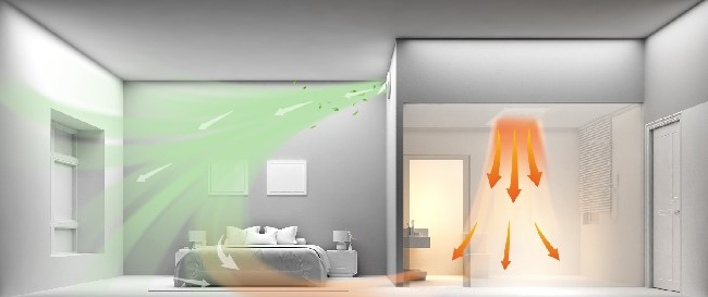 凉霸新风系统区别于普通厨房凉霸,是带新风功能的新型凉霸。新风凉霸安装于厨房凉霸位置,能在凉霸正常使用的情况下,为客餐厅提供新风。