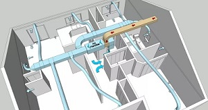 新风系统是根据在密闭的室内一侧用专用设备向室内送新风,再从另一侧由专用设备向室外排出,在室内会形成“新风流动场”,从而满足室内新风换气的需要。新风系统分为管道式新风系统和无管道新风系统两种。管道式新风系统由新风机和管道配件组成,通过新风机净化室外空气导入室内,通过管道将室内空气排出;无管道新风系统由新风机组成,同样由新风机净化室外空气导入室内。相对来说管道式新风系统由于工程量大更适合工业或者大面积办公区使用,而无管道新风系统因为安装方便,更适合家庭使用。