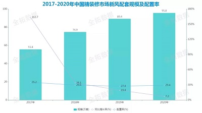 随着消费者认知的提升以及各品牌渠道战略的成熟,在房地产精装修大势之下,新风系统已成为房地产配套的新宠,在工程市场、高端住宅、旧房改造等领域均有很大的市场潜力,成为支撑新风市场规模持续增长的关键渠道。全拓数据显示,2020年中国精装修市场新风配套规模已达95.8万套,配置率为29.4%,同比增长7.2%。未来,新风的配套率将可能会达到70%,发展空间非常大。
